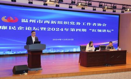 “温州经济的发展看民营,民企的兴旺靠接班和清廉。”日前,温州市两新党务工作者协会清廉民企建设论坛暨2024年第四期“红领讲坛”上,作为清廉民企示范企业代表的申博集团党委书记、总裁林建一在主旨发言中开门见山,围绕企业内部风险防控机制建设的新实践,分享了有关清廉民企建设新的成果和经验。